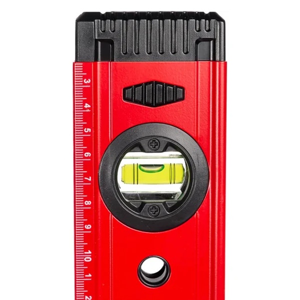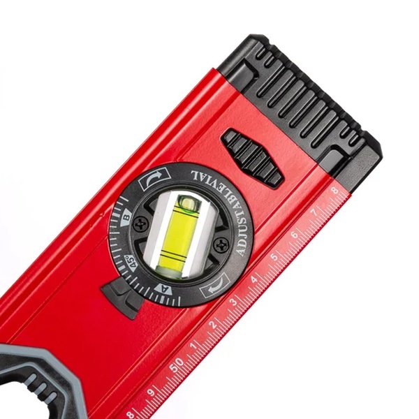 Оснащён тремя высокоточными измерительными глазками (ампулами), позволяющими быстро и удобно определять отклонения по горизонтали, вертикали и под углом 45°. Встроенные магниты обеспечивают надёжную фиксацию уровня на металлических поверхностях, освобождая руки для работы.
