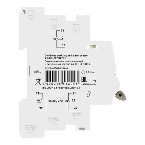 Совмещённые вспомогательные и сигнальные контакты AV-OF+OF/SD производства EKF предназначены для использования во вспомогательных цепях управления и сигнализации как переменного, так и постоянного тока.