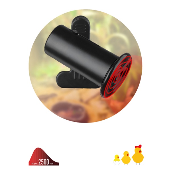 Поворотный светильник для керамических и инфракрасных ламп с цоколем Е27 до 250Вт на прищепке Б0053292