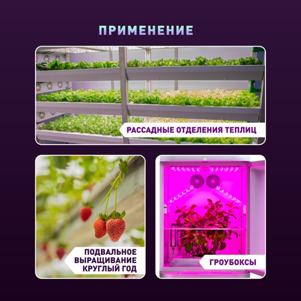 Высококачественный драйвер соответствует современным требованиям безопасности и энергоэффективности, обеспечивает стабильное питание светодиодов без мерцания и перепадов, что положительно влияет на здоровье растений и срок службы светильника. Подвесная конструкция позволяет легко регулировать высоту установки в зависимости от стадии роста растений и особенностей выращивания.