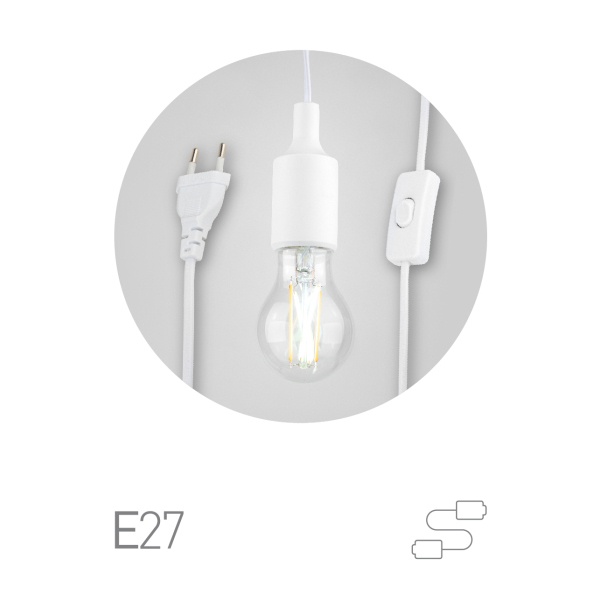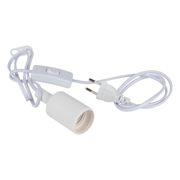 Электрический патрон Е27 с питающим шнуром 1,5м и выключателем белого цвета Б0057286