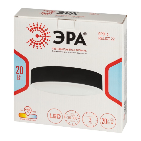 Круглый накладной LED светильник ЭРА SPB-6 Relict, мощностью 20 Вт нейтральный белый свет, цвет черный Б0059508