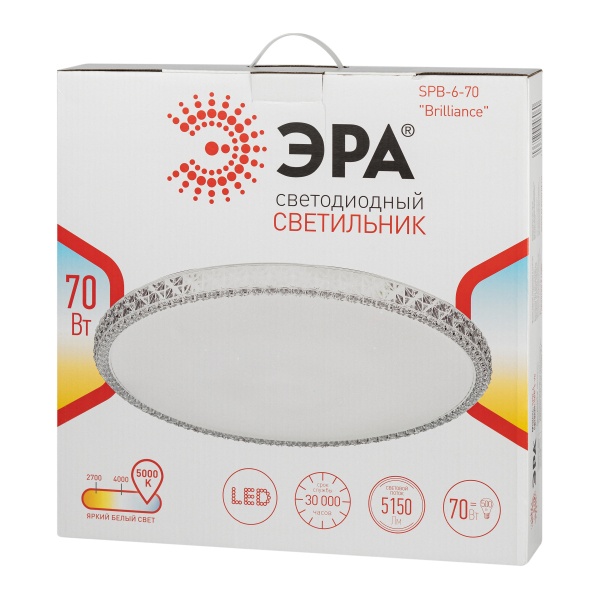 Круглый накладной LED светильник ЭРА SPB-6 Brilliance, мощностью 70 Вт дневной свет, цвет белый Б0059510
