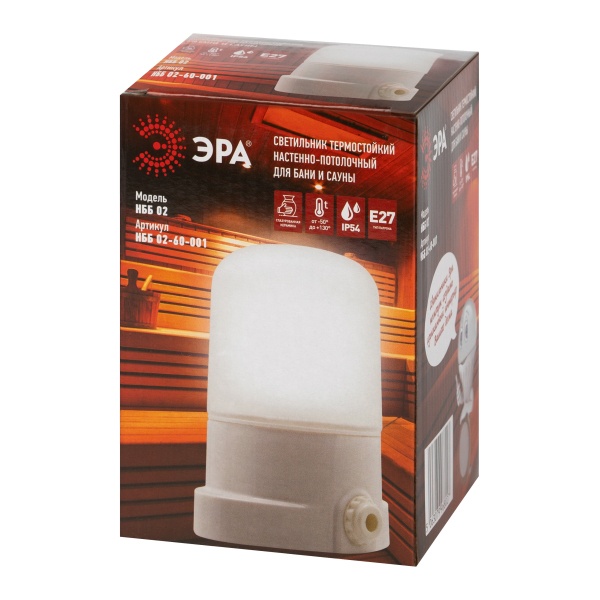 Термостойкий керамический светильник серии НББ-02 от ЭРА предназначен для эксплуатации в помещениях с повышенной температурой и влажностью. Он оптимально подходит для бань, саун, бассейнов, а также других зон, где требуется надёжное и безопасное освещение при сложных условиях эксплуатации.