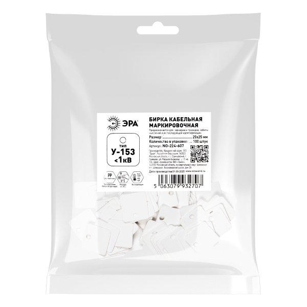 Бирки кабельные маркировочные, малый квадрат 25х25 мм Б0066727