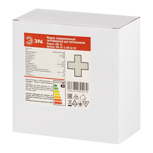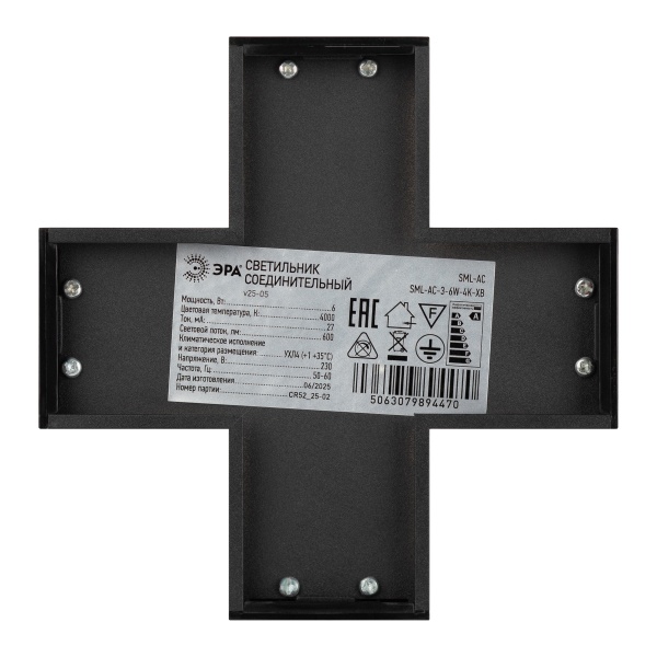 Соединительный Х-образный LED светильник 6Вт, ЭРА SML-30 черного цвета, нейтральный белый свет Б0069431