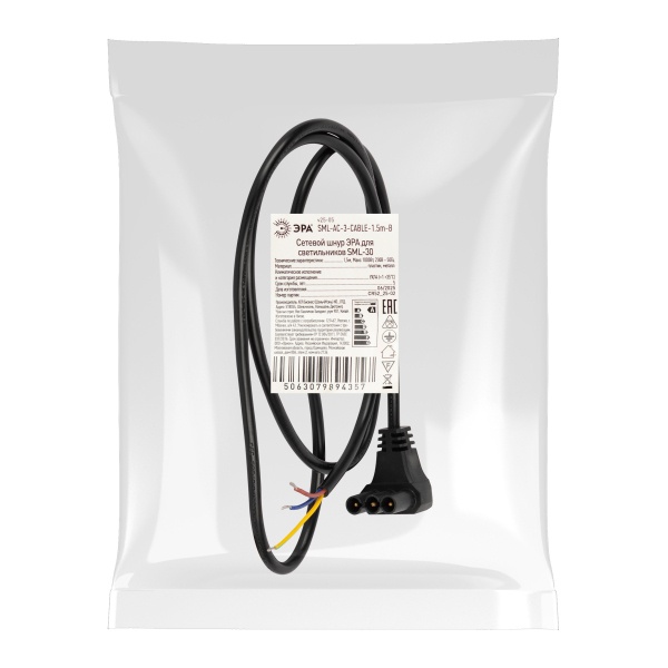 Сетевой шнур ЭРА SML-AC-3-CABLE-1.5m-B, длина 1500 мм, предназначен для подключения светильников серии ЭРА SML-30 к бытовой электросети. Изготовлен из прочных и износостойких материалов, обеспечивающих длительный срок службы и стабильную работу оборудования. Шнур оснащён надежным коннектором, полностью совместимым со светильниками линейки SML, что гарантирует быстрый и безопасный монтаж без необходимости дополнительных переходников. Имеет оптимальную длину для удобного размещения светильников в жилых и коммерческих помещениях, включая кухни, гардеробные, витрины и рабочие зоны. Подходит для использования как в одиночных, так и в модульных светосистемах.