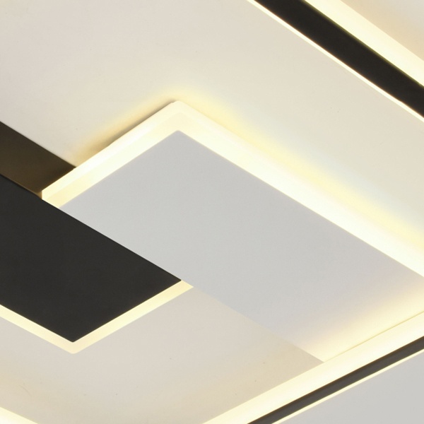 Современный потолочный светодиодный светильник квадратной формы с элегантным чёрно-белым дизайном станет стильным акцентом любого интерьера. Оснащён удобным пультом дистанционного управления, который позволяет плавно регулировать яркость и менять цветовую температуру в диапазоне 3000–6500?K - от тёплого мягкого света до холодного дневного. Мощность 104?Вт обеспечивает равномерное, яркое и комфортное освещение, идеально подходящее для гостиных, кухонь, офисов и рабочих зон. Лёгкий монтаж, энергосбережение и долговечность делают этот светильник практичным и современным решением для дома и офиса.