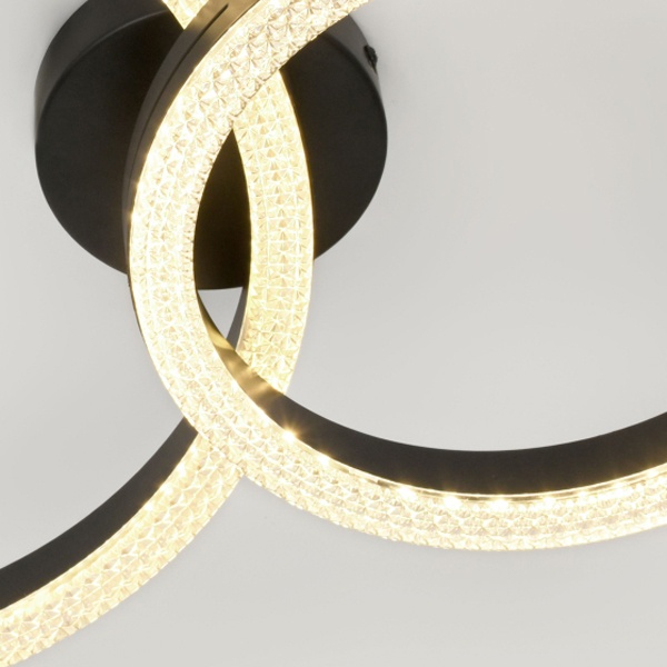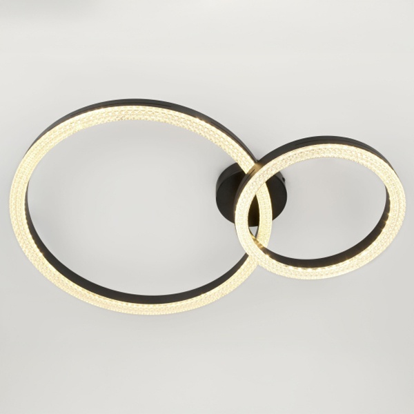 Серия потолочных светодиодных светильников в форме колец выполнена в элегантном чёрном цвете и дополнена рельефным акриловым рассеивателем, который создаёт мягкий, равномерный свет без бликов. Современный минималистичный дизайн гармонично вписывается в различные интерьерные стили - от модерна и хай-тека до скандинавского и современного классического.