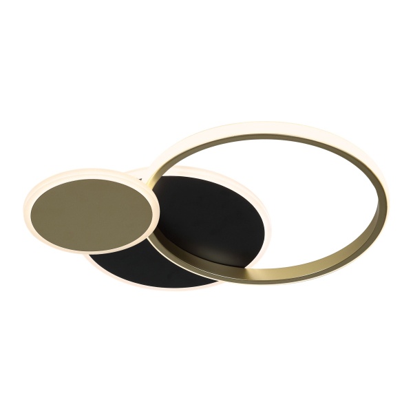 Серия потолочных светодиодных светильников в форме колец выполнена в элегантном чёрно-золотом цвете и дополнена акриловым рассеивателем, который создаёт мягкий, равномерный свет без бликов. Современный минималистичный дизайн гармонично вписывается в различные интерьерные стили - от модерна и хай-тека до скандинавского и современного классического.