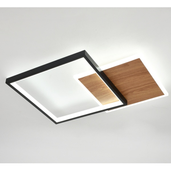 Современный потолочный светодиодный светильник геометрической формы в элегантном черном цвете с акцентами под натуральное дерево станет стильным элементом интерьера в стиле минимализм, лофт или сканди. Лаконичный дизайн и четкие линии подчеркивают актуальность модели и делают ее гармоничным акцентом как в жилых, так и в коммерческих пространствах.