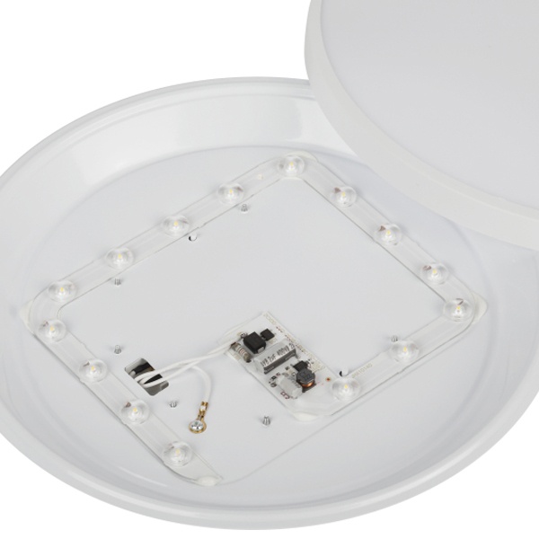 Цветовая температура 5000 К формирует нейтрально-холодный белый свет, способствующий концентрации и комфортной работе. Рекомендуемая площадь освещения — до 6 м2. Встроенные светодиоды отличаются энергоэффективностью, стабильной работой без мерцания и длительным сроком службы — до 30 000 часов.