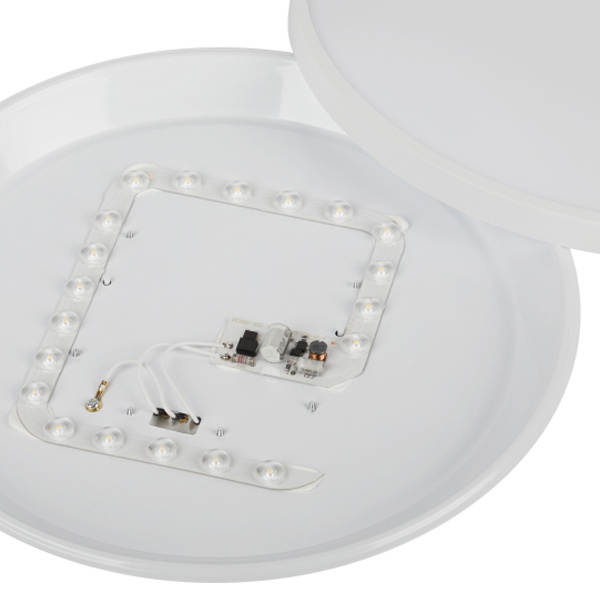 Цветовая температура 5000 К формирует нейтрально-холодный белый свет, способствующий концентрации и комфортной работе. Рекомендуемая площадь освещения — до 9 м2. Встроенные светодиоды отличаются энергоэффективностью, стабильной работой без мерцания и длительным сроком службы — до 30 000 часов.
