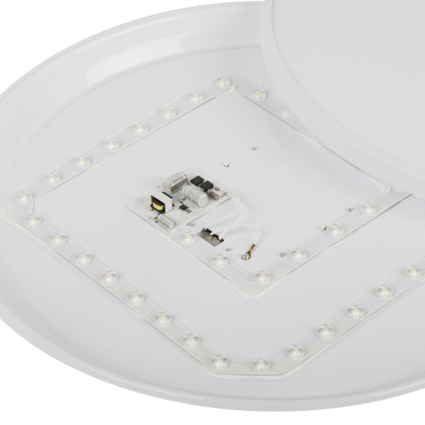 Цветовая температура 5000 К формирует нейтрально-холодный белый свет, способствующий концентрации и комфортной работе. Рекомендуемая площадь освещения — до 18 м2. Встроенные светодиоды отличаются энергоэффективностью, стабильной работой без мерцания и длительным сроком службы — до 30 000 часов.