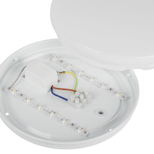 Классическая круглая форма плафона гармонично сочетается с различными стилями интерьера - от минимализма до современного классического оформления. Матовый рассеиватель обеспечивает мягкое и равномерное распределение светового потока, устраняя резкие тени и предотвращая появление бликов, что делает освещение комфортным для глаз даже при длительном пребывании в помещении.