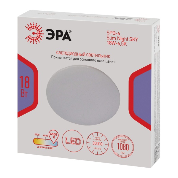 Круглый накладной LED светильник ЭРА SPB-6 Night Sky, мощностью 18 Вт холодный дневной свет, цвет белый Б0069779