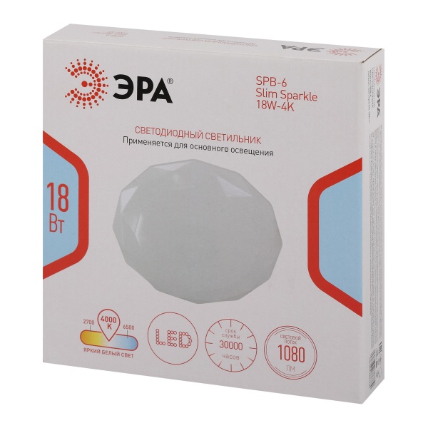Модель проста в установке, не требует дополнительного обслуживания и подходит для использования в качестве основного или дополнительного источника света. ЭРА SPB-6 Slim Sparkle объединяет современный дизайн, надёжность и энергоэффективность, что делает его практичным выбором для квартир, офисов, торговых и подсобных помещений.
