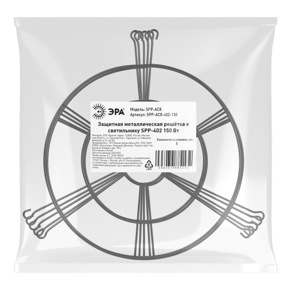 Защитная металлическая решётка ЭРА SPP-AC8 предназначена для дополнительной защиты промышленных и складских светильников SPP-402 мощностью 150 W. Аксессуар предотвращает повреждение светильника от механических воздействий - ударов, падения предметов или случайного контакта, что особенно важно в производственных, складских и технических помещениях.