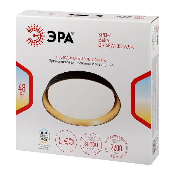 ЭРА SPB-6 Bella 48W-3K-6,5K WH сочетает современный дизайн, надежность, энергоэффективность и универсальность применения, что делает его оптимальным вариантом для жилых, офисных, торговых и вспомогательных помещений.