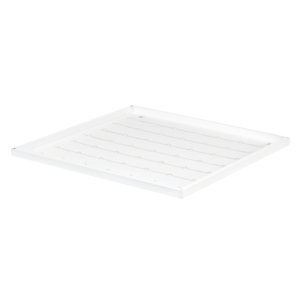 Универсальный потолочный светильник квадратный 588*588 накладной и встраиваемый в Армстронг с матовым рассеивателем Б0070914