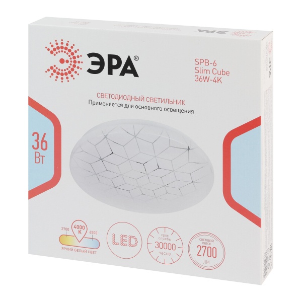 Мощность устройства составляет 36 Вт, при этом световой поток достигает 2700 лм, обеспечивая эффективное освещение площади до 12 м2. Матовый рассеиватель равномерно распределяет свет, устраняя резкие тени и блики, благодаря чему освещение остается мягким и комфортным для глаз даже при длительном использовании.