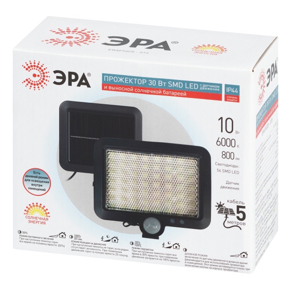Светодиодный накладной уличный прожектор ЭРА мощностью 30 Ватт, с датчиком движения, на солнечной батарее Б0071278