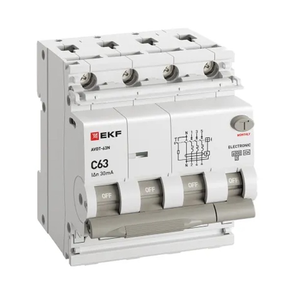 Автоматический выключатель дифференциального тока АВДТ-63N PROXIMA EKF представляет собой комбинированное устройство, объединяющее функции автоматического выключателя и УЗО (электромеханического или электронного типа). Благодаря такому решению прибор обеспечивает комплексную защиту электрической сети одновременно от: