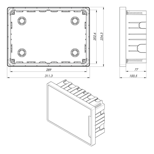 Благодаря симметричной конструкции корпуса, дверь щитка может открываться как влево, так и вправо, обеспечивая удобный доступ к оборудованию независимо от условий установки. Щиток FRAME выполнен из прочных и износостойких материалов, что гарантирует его долговечность и надежность в эксплуатации.