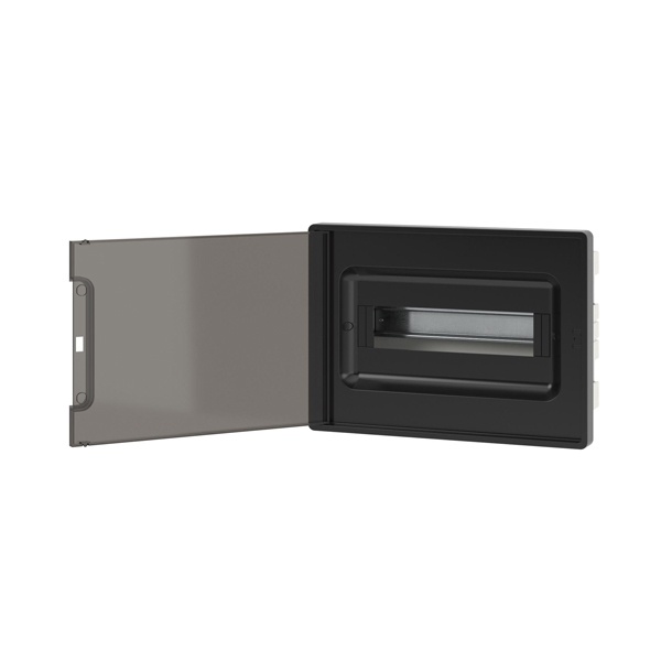 Пластиковый черный распределительный шкаф DKC Frame скрытой установки, один ряд 12 модулей, тонированая дверь F12B1BD