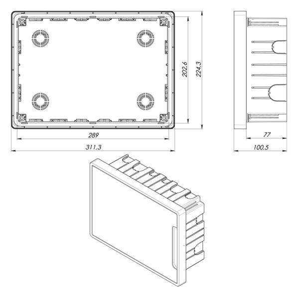 Благодаря симметричной конструкции корпуса, дверь щитка может открываться как влево, так и вправо, обеспечивая удобный доступ к оборудованию независимо от условий установки. Щиток FRAME выполнен из прочных и износостойких материалов, что гарантирует его долговечность и надежность в эксплуатации.