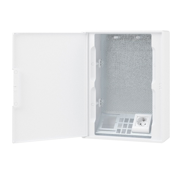 Щиток настенный слаботочный DKC FRAME 24 модуля с белой дверцей, плата, розетки IP40, белый — аккуратное и практичное решение для размещения и организации слаботочного оборудования в квартире, доме или офисе. Модель рассчитана на установку до 24 модулей, подходит для систем связи и управления, где важно обеспечить порядок, удобный доступ для обслуживания и эстетичный внешний вид.