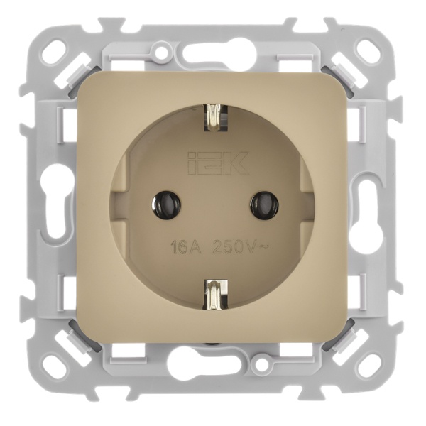 Электрическая розетка Schuko с защитным заземлением скрытого монтажа, IEK FLITE, самозажимные клеммы, хаки FI-R11-16-1-K59