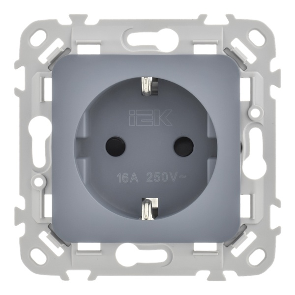 Электрическая розетка Schuko с защитным заземлением и шторками скрытого монтажа, IEK FLITE, винтовые клеммы, маренго FI-R14-16-K35
