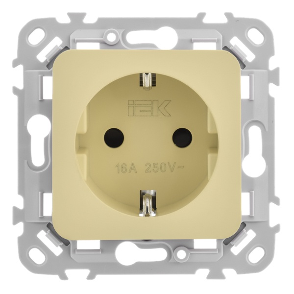 Электрическая розетка Schuko с защитным заземлением и шторками скрытого монтажа, IEK FLITE, винтовые клеммы, навахо FI-R14-16-K87