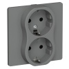 Двухместная электрическая розетка Schuko с защитным заземлением скрытой установки в одну монтажную коробку, IEK FLITE, винтовые клеммы, мокрый асфальт FI-R21A-16-K80