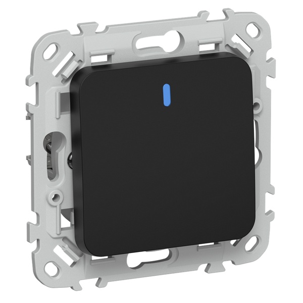 1-клавишный проходной выключатель скрытой установки с подсветкой IEK FLITE черный, безвинтовые клеммы FI-V12-1-10-1-K02