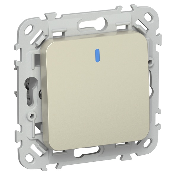 1-клавишный проходной выключатель скрытой установки с подсветкой IEK FLITE шампань, безвинтовые клеммы FI-V12-1-10-1-K37
