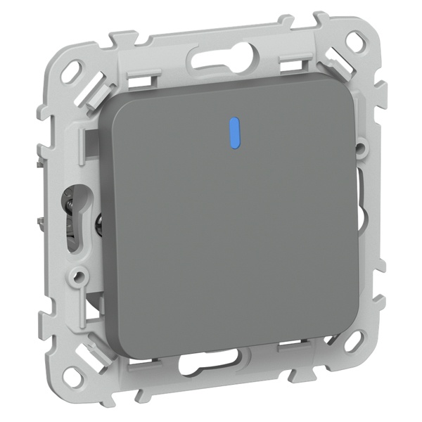 1-клавишный проходной выключатель скрытой установки с подсветкой IEK FLITE мокрый асфальт, безвинтовые клеммы FI-V12-1-10-1-K80