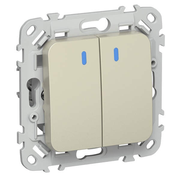 2-клавишный выключатель скрытой установки с подсветкой IEK FLITE шампань, безвинтовые клеммы FI-V20-1-10-1-K37