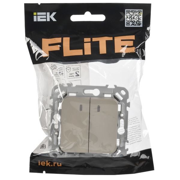 2-клавишный выключатель скрытой установки с подсветкой IEK FLITE льняной, безвинтовые клеммы FI-V20-1-10-1-K88