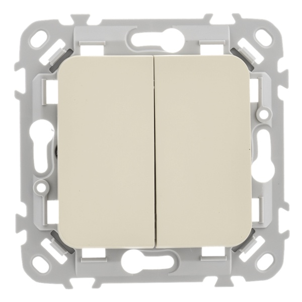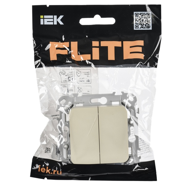 2-клавишный проходной выключатель скрытой установки IEK FLITE сливочный, безвинтовые клеммы FI-V22-0-10-1-K86