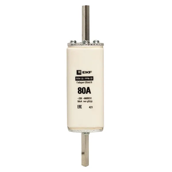 Плавкий предохранитель ножевого типа ППН-33, номинальный ток 80А, габарит 0 fus-33-0/160/80