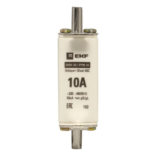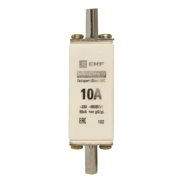 Плавкий предохранитель ножевого типа ППН-33, номинальный ток 10А, габарит 00С fus-33/100/10