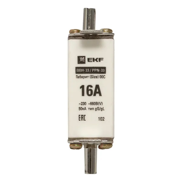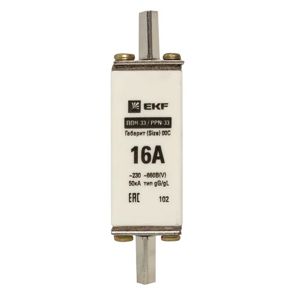 Плавкий предохранитель ножевого типа ППН-33, номинальный ток 16А, габарит 00С fus-33/100/16