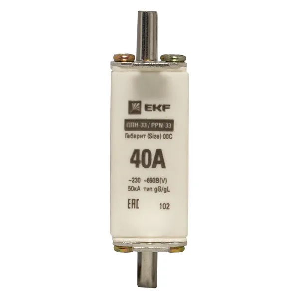 Плавкий предохранитель ножевого типа ППН-33, номинальный ток 40А, габарит 00С fus-33/100/40