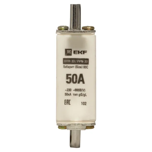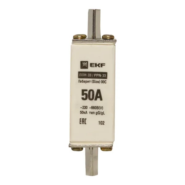Плавкий предохранитель ножевого типа ППН-33, номинальный ток 50А, габарит 00С fus-33/100/50