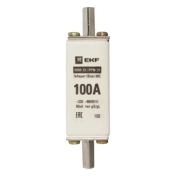 Плавкий предохранитель ножевого типа ППН-33, номинальный ток 100А, габарит 00С fus-33/100