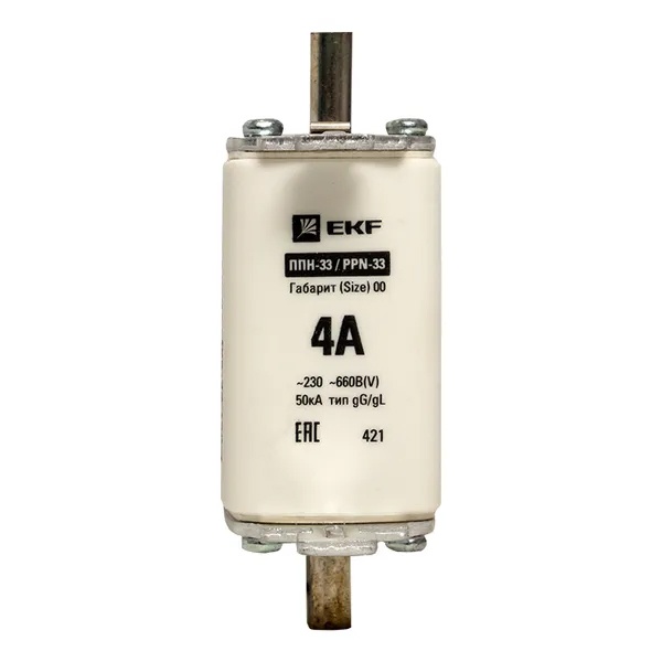 Плавкий предохранитель ножевого типа ППН-33, номинальный ток 4А, габарит 00 fus-33/160/4