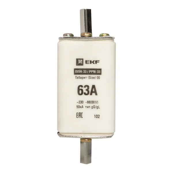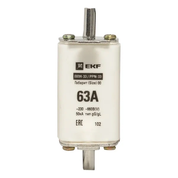 Плавкий предохранитель ножевого типа ППН-33, номинальный ток 63А, габарит 00 fus-33/160/63