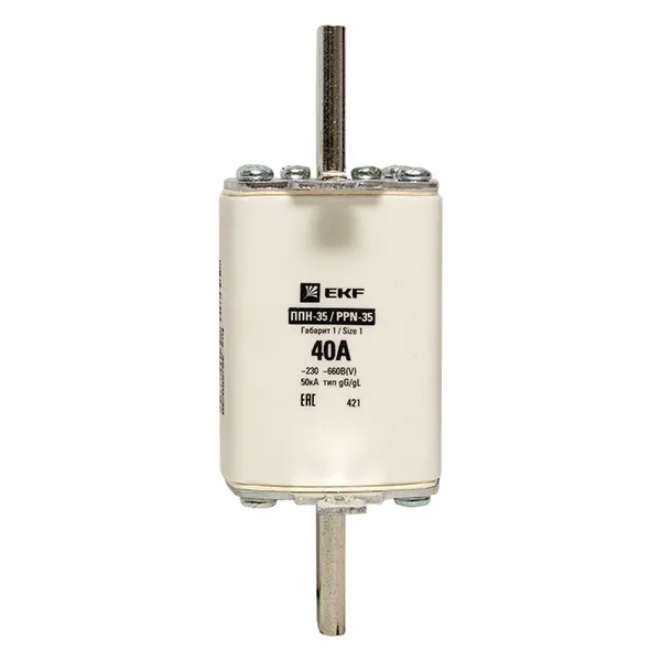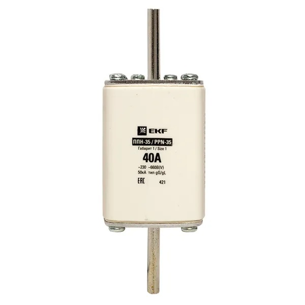 Плавкий предохранитель ножевого типа ППН-35, номинальный ток 40А, габарит 1 fus-35/250/40